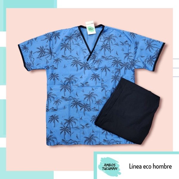 Ambo Hombre Eco Hojas fondo Azul Pantalon Negro