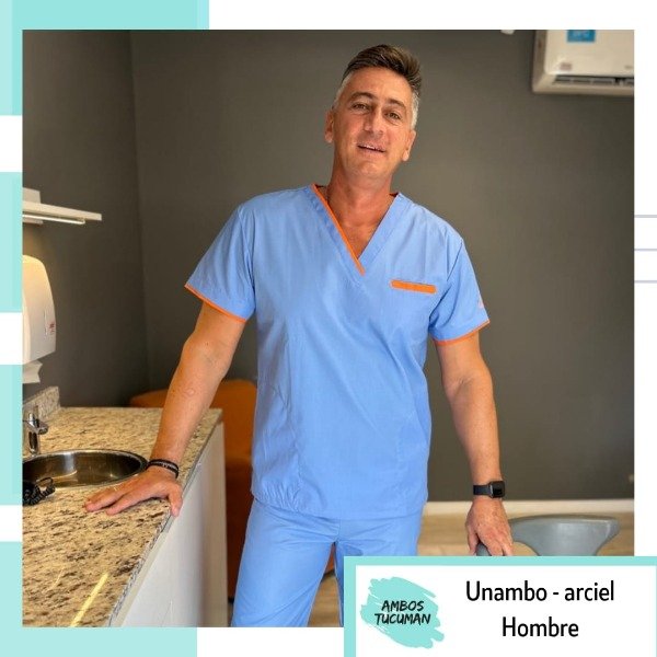 Ambo Hombre Celeste detalle Naranja Arc