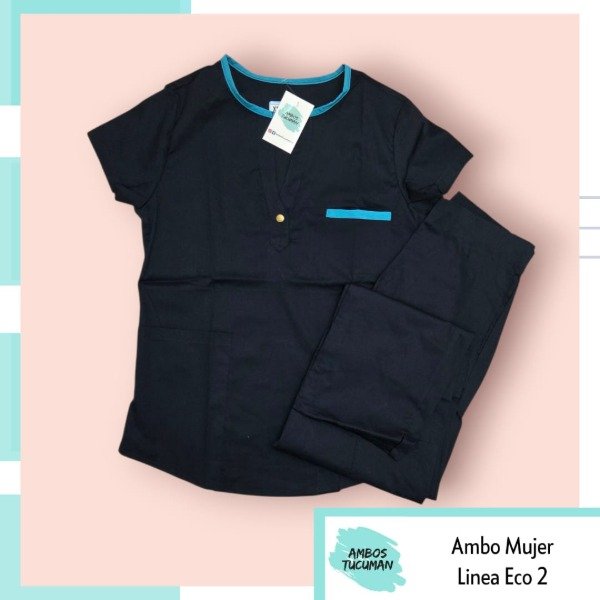 Ambo Eco Azul Noche con Boton detalle Turquesa