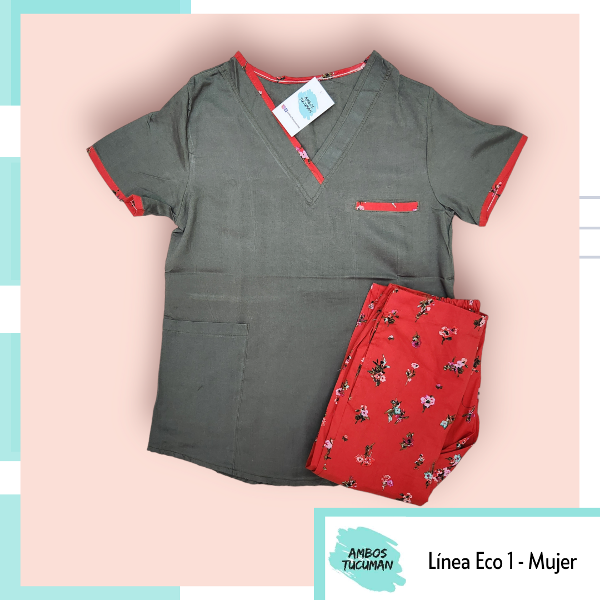 Ambo Eco Verde Pantalon Flores Fondo Rojo