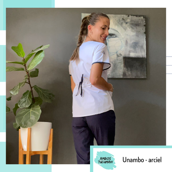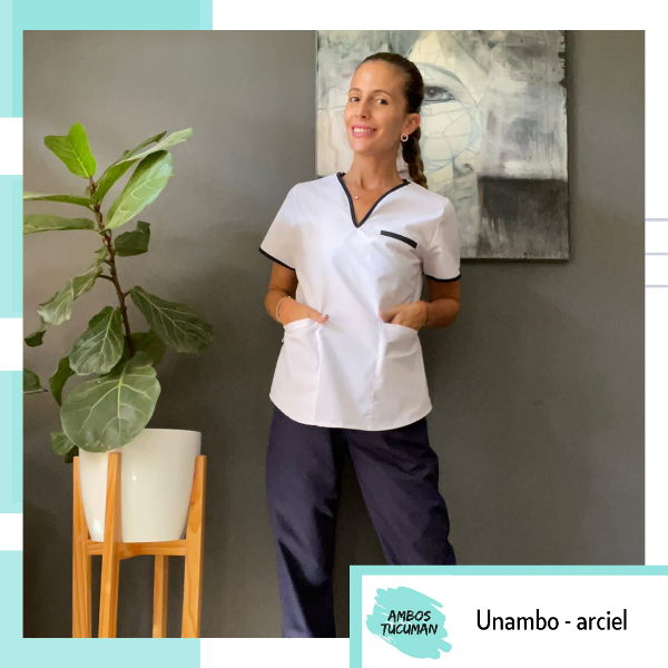 Ambo Mujer Blanco Pantalon Azul Arc Unambo
